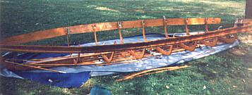 das Gerüst in die Bootshaut eingesetzt und die Bootshaut durch neuartige