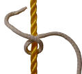 Um jedem geschleppten Boot diesen kleinen Spielraum zu geben, wurden die vorderen Boote mit eigenen Leinen versetzt an der Schlepptrosse angebunden. Dafür haben die Seeleute extra einen Spezialknoten den Stopperstek erfunden (siehe unten). Eigentlich ist es nur ein Webleinstek mit einer zusätzlichen Umschlingung. Wie alle Seemannsknoten zieht er sich unter Last fest zusammen, lässt sich aber auch nass wieder lösen. Auf glatten Polypropylentrossen kann der Stopperstek schon mal ins Rutschen kommen. Achtknoten auf der Trosse in etwas mehr als bootslangen Abständen verhindern das zuverlässig und erleichtern als Abstandsmarkierungen die Zusammenstellung eines Schleppzuges. Nur das letzte Boot hängt direkt am Ende der Trosse. |