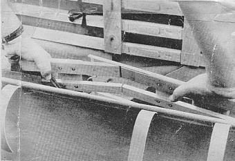1.10 Bordwände und Senten verbinden. Luftschläuche befestigen. Die Blasnippel müssen zugänglich sein (Abbildung 7). 1.11 Strippen der Bootshaut an den Bordwandschrauben befestigen. Spanten Nr. 4, 5 und 7 einsetzen. |